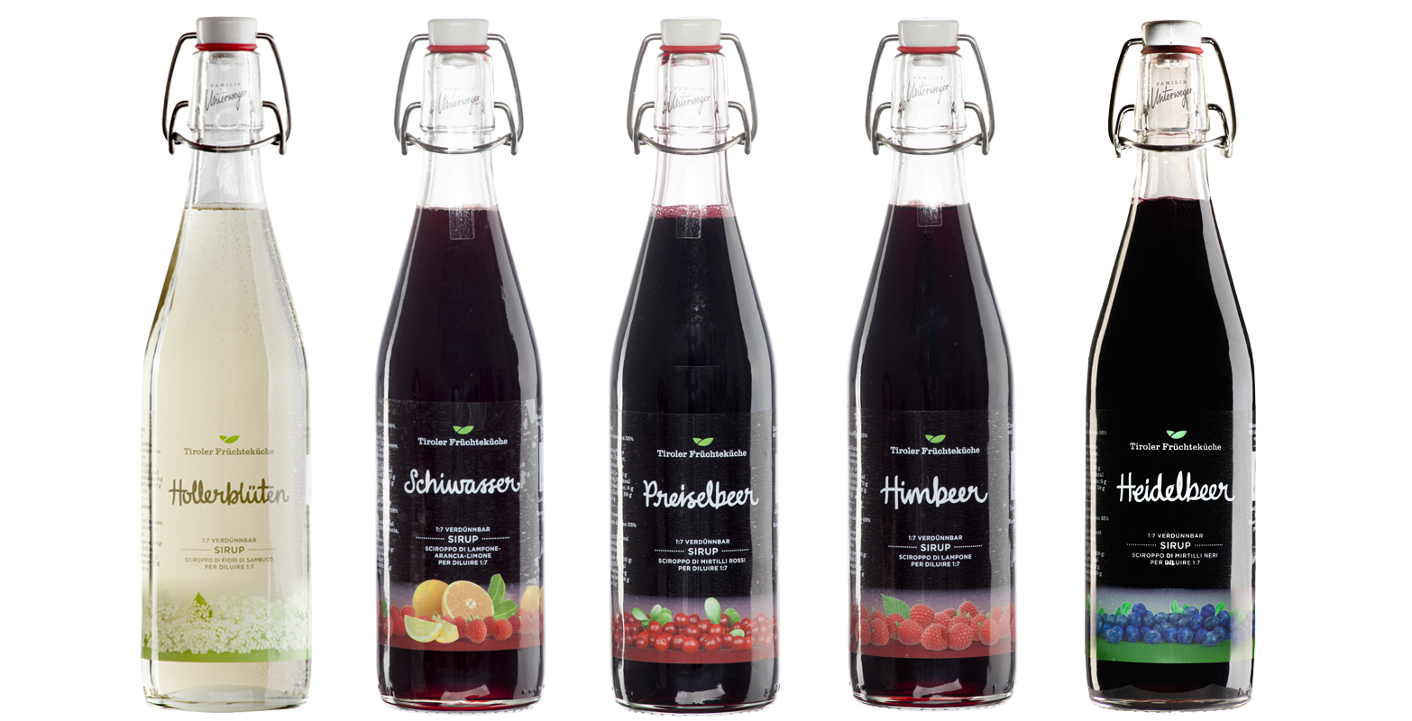 Unterweger Früchteküche produziert aus ausgewählten Früchten mit Zucker und Zitronensaftkonzentrat die erlesenen Fruchtsirupe, die im Verhältnis 1:7 verdünnt werden. Die hochwertigen Fruchtsirupe mit einem Fruchtanteil von mind. 45% sind in einer attraktiven 0,5 l Designerflasche erhältlich. Für die Gastronomie und Hotellerie wurden die Fruchtsirupe speziell in Plastikballons zu 5 und 10 l abgefüllt und haben einen Fruchtanteil von mind. 33%. Für die Plastikballons gibt es die praktischen Saftportionierer.